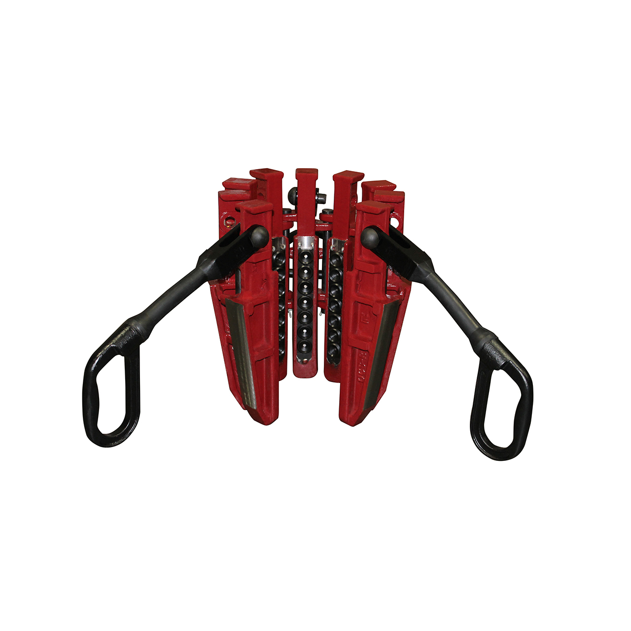 The DCS style slip uses button style inserts for maximum holding of the drill collars. Slip sizes can easily be changed with adding or removing segments or changing button sizes. They use the full wrap around design for fast slip setting. The DCS slip is offered in three sizes; short, medium and long to cover all tubular.